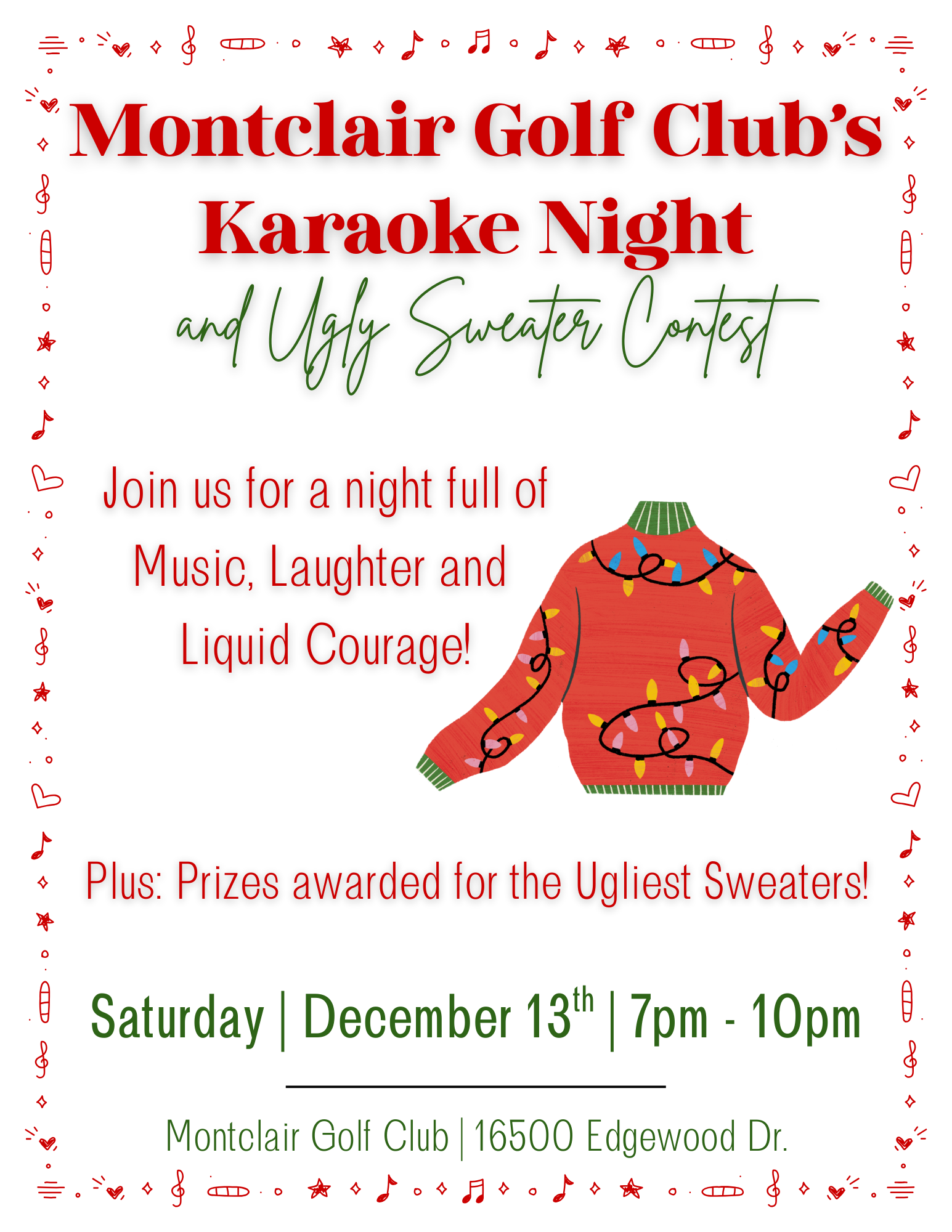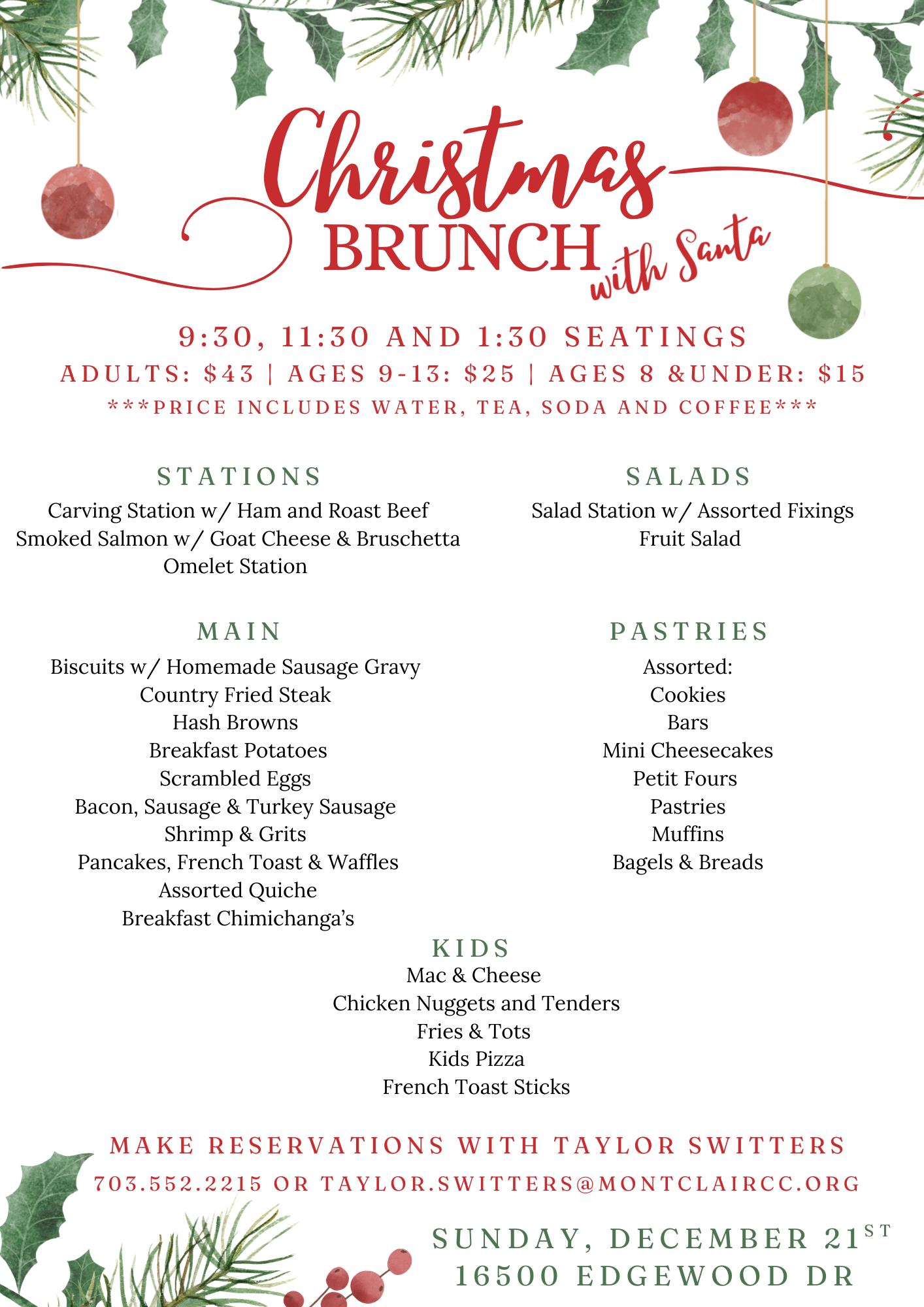 We love the holidays at Montclair Golf Club, Virginia, just like you do. We welcome any suggestions from our members concerning any other holiday events that one might like to have hosted at the club. We try to get our golf, social and tennis members involved as much as possible.