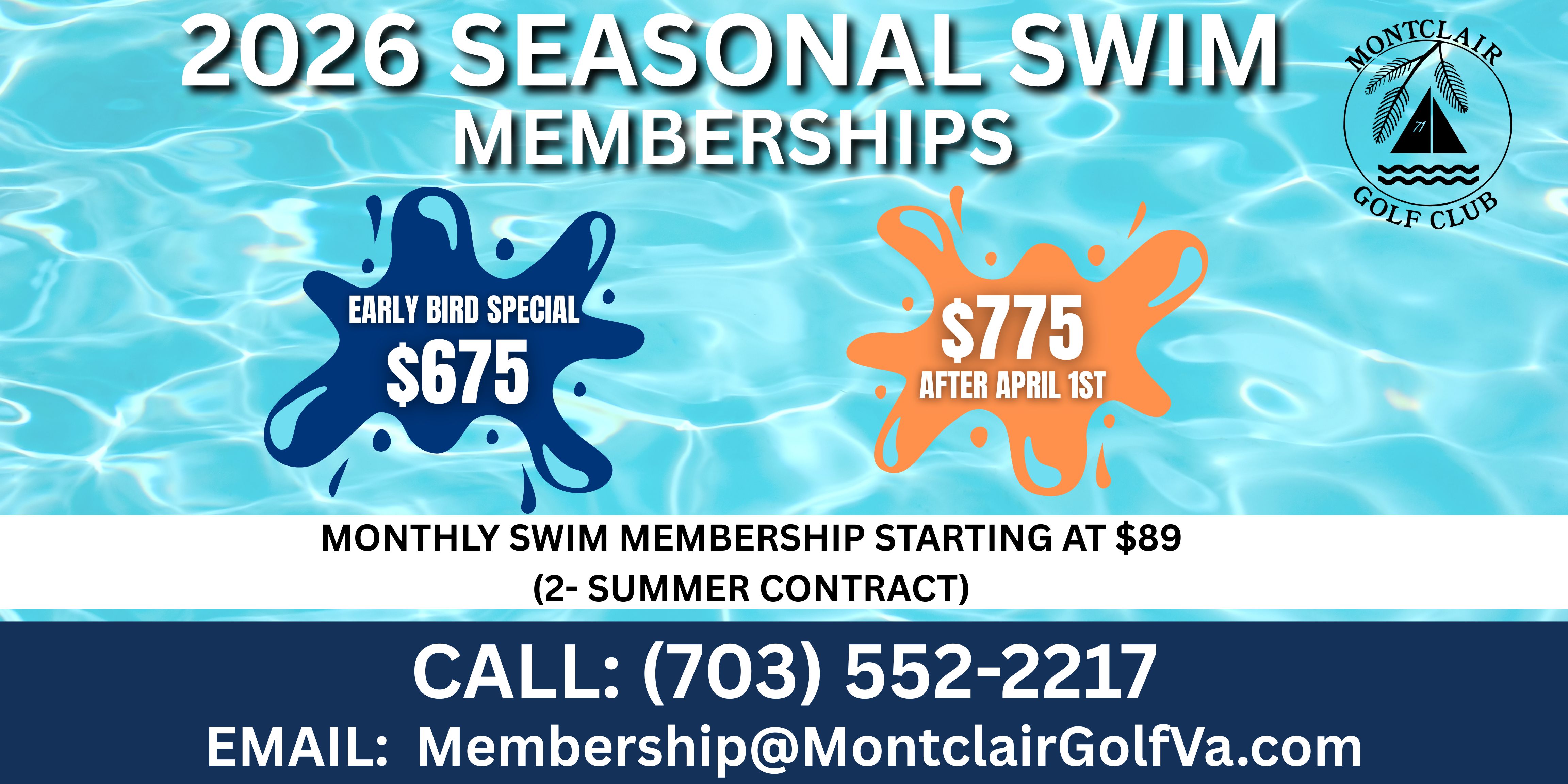 - $675 one-time payment (Early Bird Special) — pool-only access for Summer 2026