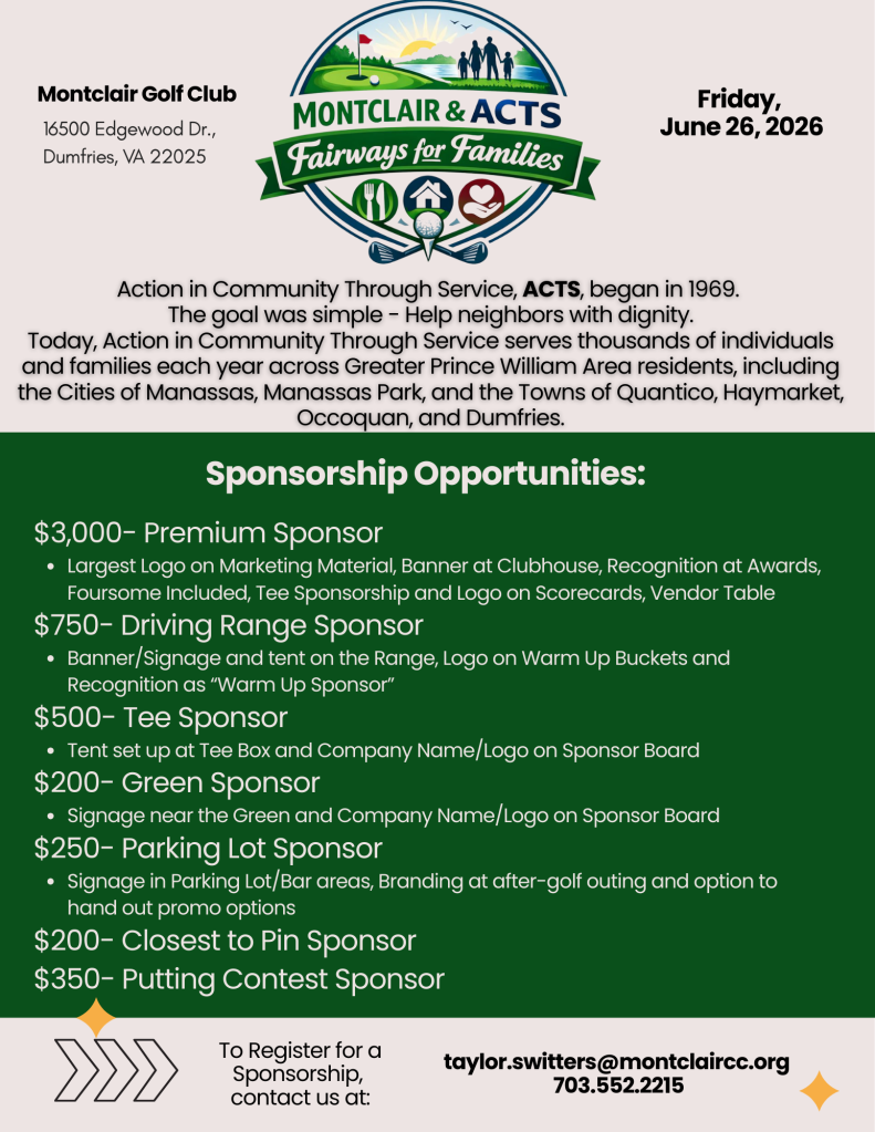 Charity Golf Tournament: Montclair & ACTS Fairways for Families.